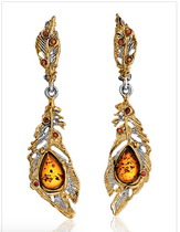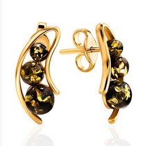 Изящные серьги в необычном дизайне из золочённого серебра и натурального янтаря