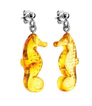 серьги из серебра с натуральным янтарём золотисто-лимонного цвета
