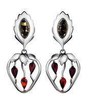серьги из тёмно-вишнёвого янтаря и серебра с позолотой