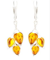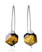 Удлинённые серьги из натурального балтийского янтаря коньячного цвета