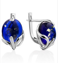 Красивые серьги из серебра и янтаря ярко-синего цвета
