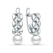 Серьги из серебра с культивированным жемчугом и фианитами родированные 221-10-33