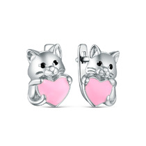 Серьги-пусеты из серебра с эмалью родированные - Лапка и Кошка 2110130