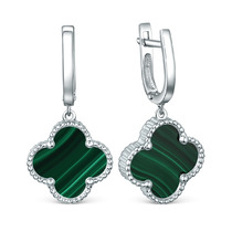 Серьги из серебра с малахитом родированные - Клевер, четырёхлистник 925 пробы 22