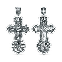 Крест православный из чернёного серебра - Пресвятая Богородица, спаси нас 3,9 см