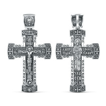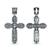 Крест православный из чернёного серебра - Спаси и сохрани 4 см 925 пробы ПР-001ч