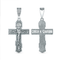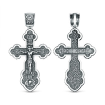 Крест православный из чернёного серебра - Спаси и сохрани 4,4 см ПК-017-2ч