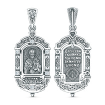 Подвеска религиозная из чернёного серебра - Николай Чудотворец, молитва Николаю