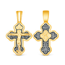 Крест двусторонний из чернёного серебра с лимонной позолотой - Распятие, Ангел-Х