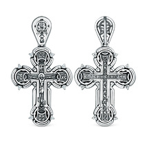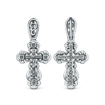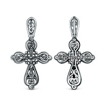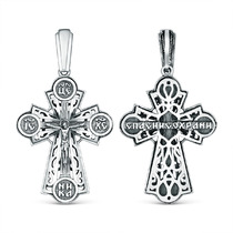 Подвеска религиозная из чернёного серебра - Распятие, молитва Животворящему крес