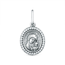 Подвеска православная из чернёного серебра с фианитами - Казанская Божья Матерь