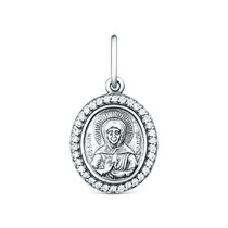 Подвеска православная из чернёного серебра с фианитами - Николай Чудотворец 4,8