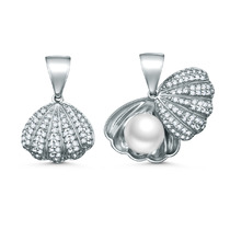 Подвеска из серебра с жемчугом и фианитами родированная - Ракушка 3-213р1005