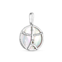 Подвеска из серебра с перламутром и фианитами родированная - Эйфелева башня 925