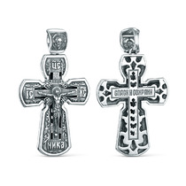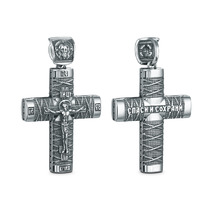 Крест из чернёного серебра - Распятие, Спаc Неpукотвоpный, Спаси и сохрани, Арха