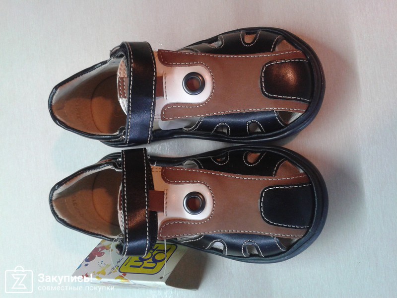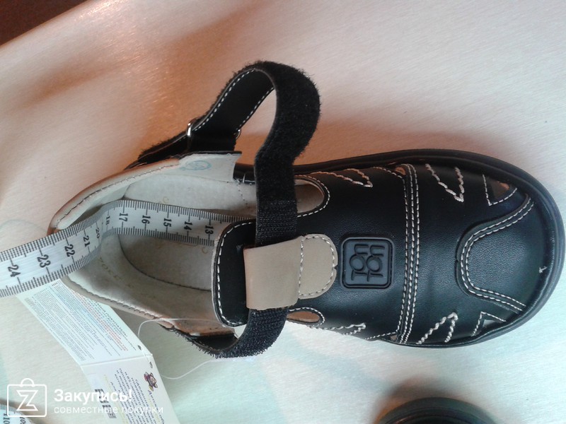 Пусть я буду первая с отзывом)) Не первый раз заказываю обувь у Марины. Работа Марины на 5+. Всегда быстро поможет и подскажет по размеру и посоветует. Заказывала сандали Топ-Топ. Так как у меня мальчики-близнецы 3 года и с выбором по сложнее)) Размер ноги одинаковый, а вот две одинаковые пары не всегда получается прикупить. Поэтому выбираю похожие модели, чтобы не ссорились. Стопа у нас 16,5, размер носим 27-28. Получила сандали сегодня, но это я долго ехала в ЦР, т.к заказываю много, у меня нет времени по магазинам ходить. Теперь по делу)) Впервые купила сандали этой фирмы. Упакованы стандартно, но коробка яркая детская, в общем красивая).Качество мне понравилось, сшиты аккуратно, нитки и клей не торчат. Верх искусственный, но смотрится хорошо, запаха не имеют. Внутри стелька мягкая типа микрозамши пятка жесткая и прошита по углублению, т.е при ходьбе не будут тереть пятку. Стелька натуральная не полностью, до половины. Под пальцами тканевая стелька. Есть \"подушечка\" для правильного формирования стопы. Цвет как на сайте. Подошва хорошо гнется. На фото видны замеры внутри по стельке и подошвы. Липы аккуратные, плотные, цепки (крючки)частые. У нас много обуви и мне есть с чем сравнить. За такую цену качество отличное. Посмотрим как поведут себя в носке. Спасибо Марина большое! Надеюсь мой отзыв поможет мамочкам в выборе.