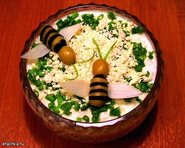 5) желтки, раздавленные вилкой (поливать майонезом ЭТОТ слой не надо)