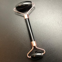Массажер для лица двусторонний из черного Агата, розового золото
