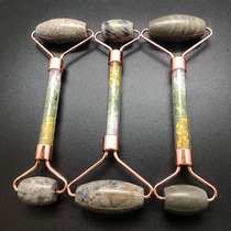 Массажер для лица двусторонний из Яшмы, с камнями Самоцветами в ручке
