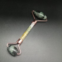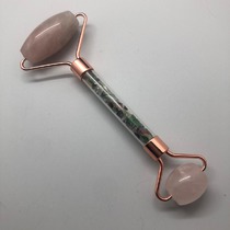 Массажер для лица двусторонний из зеленой Яшмы, розовое золото 03