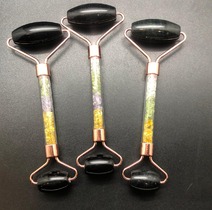 Массажер для лица двусторонний из черного Агата и камней самоцветов в ручке
