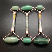 Массажер для лица двусторонний из зеленой Яшмы, розовое золото