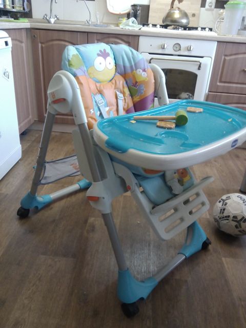 у нас такой! мне нравится этот стульчик. недорогой, комфортный. в нём растёт второй ребенок. сейчас в нём сынка (5 мес) кушает пюрешки и просто лежит со мной на кухне пока я готовлю. 3 положения спинки, несколько положений по высоте (уж не знаю сколько, т.к. у нас на одной высоте стоит), на колесиках и что самое комфортное (на мой взгляд) - это экокожа: мягкая перфорированная. два раза стирала её в стиральной машинке и ничего с ней не случилось. есть мягкий вкладыш для малышни