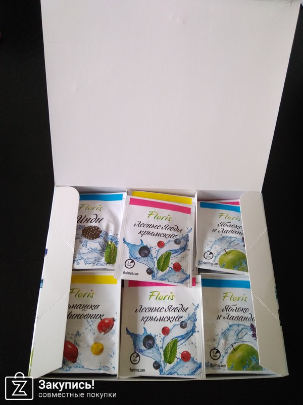 Чайные наборы торговой марки Флорис: \"На здоровье\"( 4 пакета чая по 40 гр) и \"Крымская чайная коллекция\" (30 пакетиков 6 видов чая). Спасибо организатору за закупку !