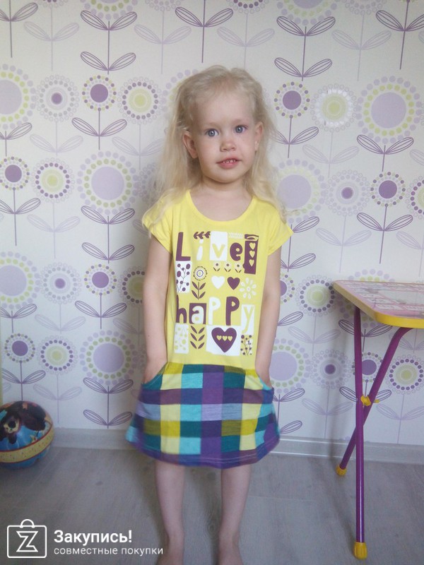 Брала комплект на младшую 98/104 рост у нас где то 98 и есть. село очень хорошо. На лето хватит. Старшей платье 122/128. рост 116, ну хватануло конечно))) по колено)))