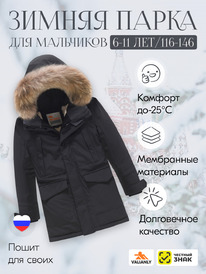 Куртка парка зимняя детская подростковая для мальчика с капюшоном и мехом черног