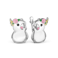 Серьги детские Попугаи из серебра с эмалью и фианитами