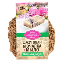 Джутовая вязанная мочалка с натуральным мылом Чайная Роза
