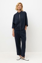 Брюки из трикотажного полотна дабл фейс, с внутренней резинкой по талии и низу. Боковые карманы с отрезным бочком, кант по боковому шву.