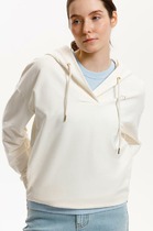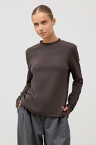 Джемпер из трикотажного полотна джерси фактурное, свободного кроя. Округлая горловина с обтачкой. Длинный рукав со спущенной линией плеча, по низу манжеты. По переду декоративные защипы. По низу изделия манжет с боковыми разрезами.