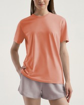 Футболка женская из эластичного хлопкового полотна. Короткий рукав. Круглая горловина. В боковом шве фирменный жаккардовый логотип.