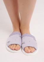 Домашние тапочки с открытым носом из хлопкового трикотажного полотна с эластаном, нашивка на стелке. Толстая подошва.
