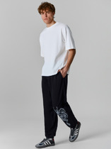 Брюки бананы, свободные длинные, посадка по шву сидения слегка занижена. Пояс цельнокроенный с эластичной тесьмой внутри 50мм. На передней части пояса пробиты петли и втянут шнур( 10PXС-1 с застроченными концами). По переду обработаны карманы в боковых швах. Низ брюк обработан швом вподгибку, с эластичной тесьмой внутри 30мм.