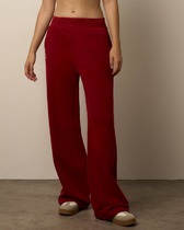 Брюки женские прямого силуэта из трикотажного полотна интерлок. Пояс цельнокроенный на жаккардовой эластичной тесьме.