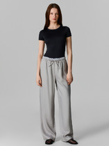 Боковые швы смещены вперед, чтобы создать более плавный и женственный силуэт. На поясе предусмотрена мягкая резинка, а в боковых швах спрятаны удобные карманы. Особый крой в области колена позволяет брюкам сохранять свою форму и не сковывать движения при ходьбе.