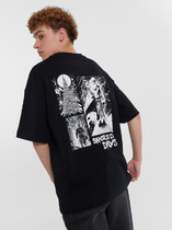 Футболка изготовлена из трикотажного полотна кулирка. Футболка свободная, прямого силуэта.