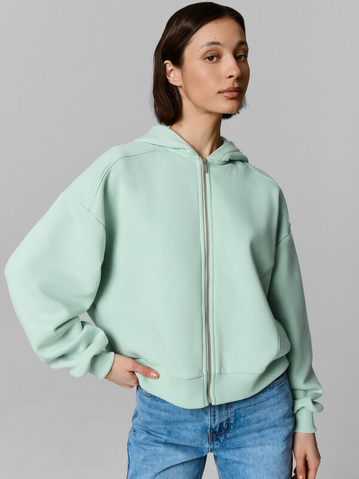 Толстовка свободного силуэта из трикотажного полотна футер. Горловина круглая, обработана капюшоном.