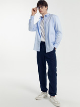 Мужские классические брюки. Выполнены из плотного хлопкового твилла. Модель прямого кроя со средней посадкой и длиной до щиколотки. Пояс оснащён эластичными вставками по бокам и шлевками под ремень. Спереди — карманы с входом, сзади — два кармана, которые застёгиваются на пуговицы. Основная застёжка — на молнии и пуговице.