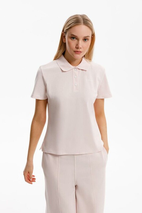 Классическая модель футболки-поло из легкого трикотажа пике в нежно-розовом оттенке. Придает комфорт за счет мягкого хлопка в составе.