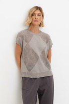 Уютный вязаный джемпер с красивым вывязанным узором и воротником-стойкой из полушерстяной пряжи. Шерсть мериноса в составе сохраняет тепло, а волокна акрила добавляют мягкость и объем. Комфортная посадка и спущенные плечи придают изделию объем.