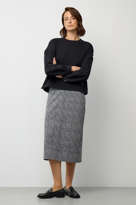 Юбка прямого силуэта изготовлена из премиального трикотажного полотна DOUBLE FACE. Особая обработка силиконом делает ее легкой и придает шелковистую текстуру. Прямой крой подчеркивает силуэт, создавая элегантный классический образ.