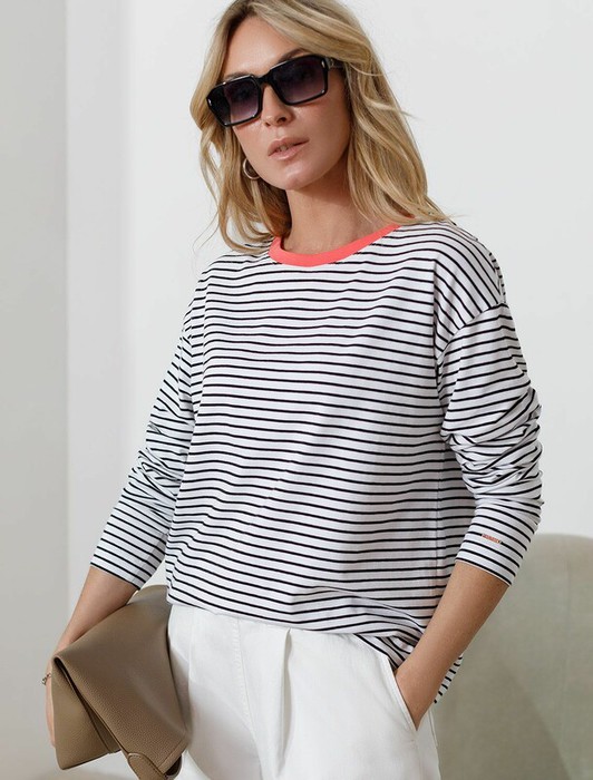 Совместные покупки Уфа Женская одежда Джемперы, свитеры, водолазки — 06.04 Vilatte Лонгслив с принтом из премиального хлопка с эластаном D49.148 бел