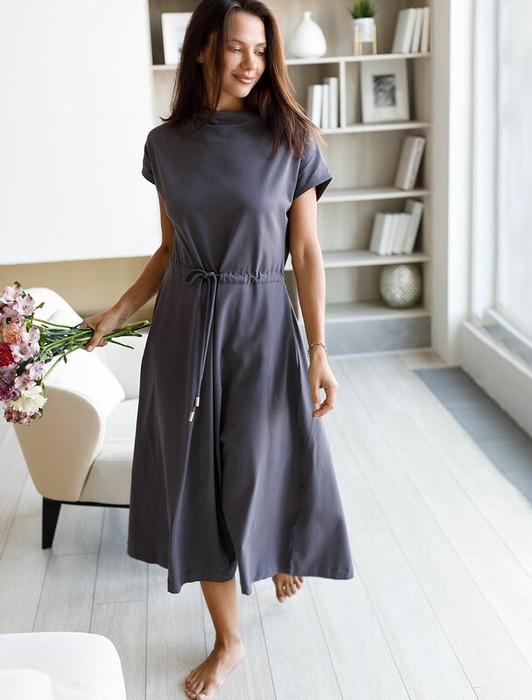 Совместные покупки Уфа Женская одежда Платья — 06.04 Vilatte Платье с цельнокроеным рукавом из премиального хлопка D42.109 сер
