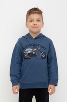Толстовка с капюшоном для мальчика из петельчатого футера . Манжеты и пояс из эластичного трикотажа в рубчик. Спереди удобный карман-кенгуру.