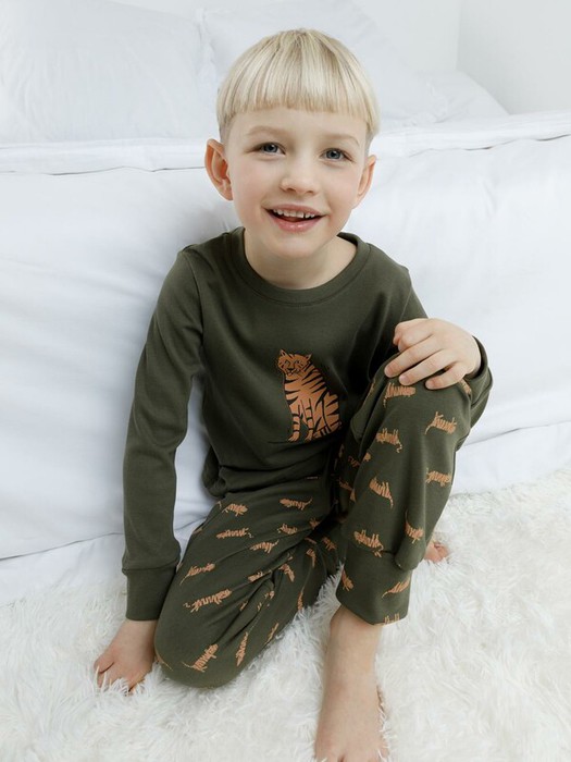 08.04 Crockid пижама дет К 1541/хаки,полосатые тигры
