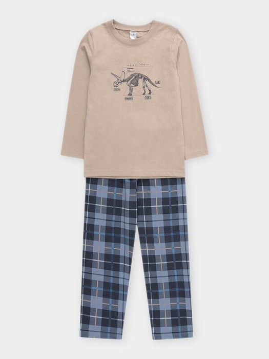 Пижама для мальчика из натурального хлопка. Джемпер с длинными втачными рукавами и прямые брюки с эластичной резинкой в поясе. Оригинальная набивка и принт выполнены из стойких текстильных гипоаллергенных красителей. Изделие сохраняет цвет и форму после многократных стирок. Все трикотажные полотна производятся в соответствии с нормами швейцарского сертификата ЭкоТекс.